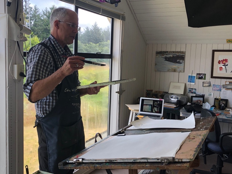 In the Seattle area, The Art Muse in downtown Woodinville has a nice selection of Eric’s watercolors on display.