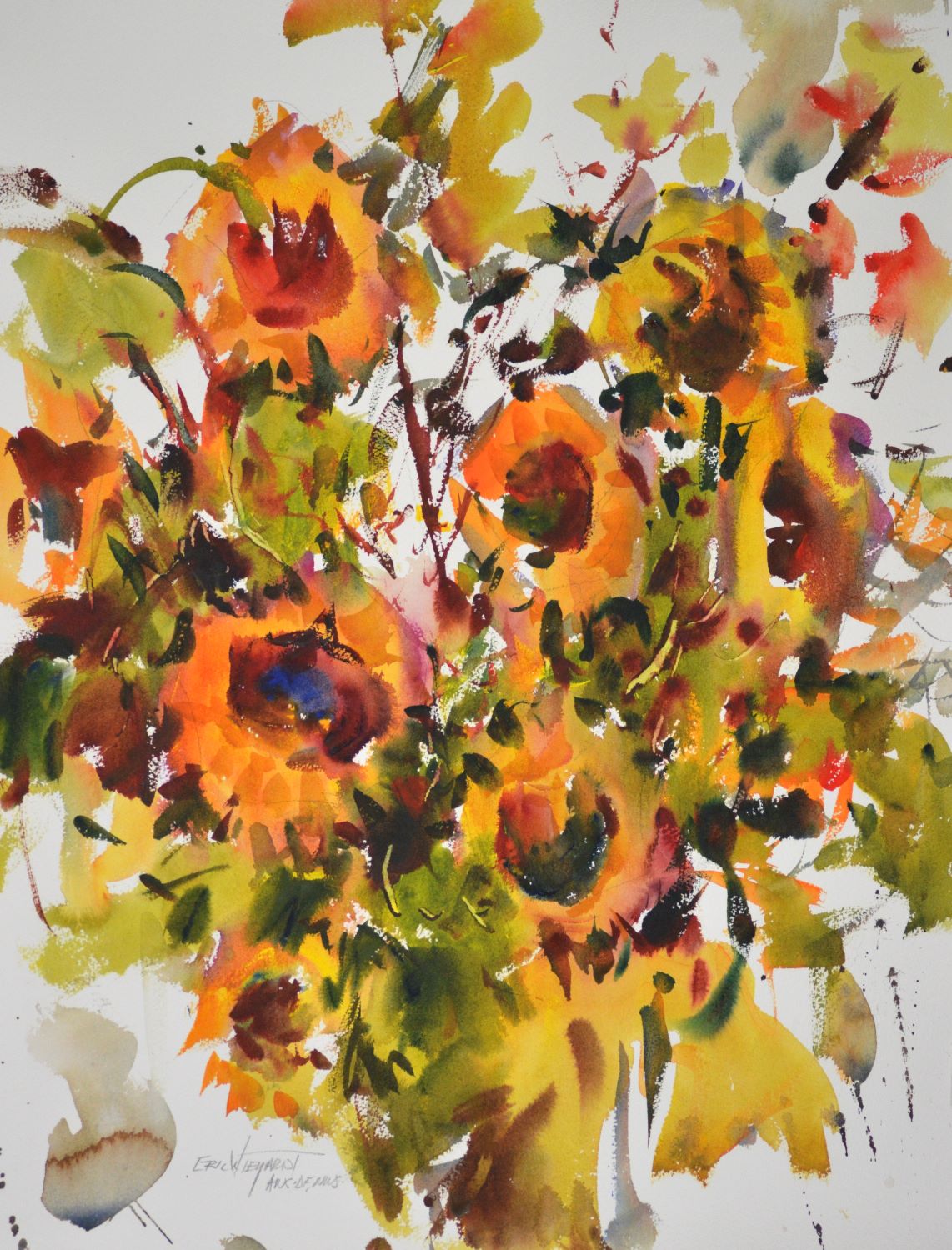 Sunflowers, with their vibrant yellow petals and sturdy stems, symbolize joy and positivity. Their cheerful presence makes them an ideal subject for artists, inspiring lively creativity in every brushstroke.