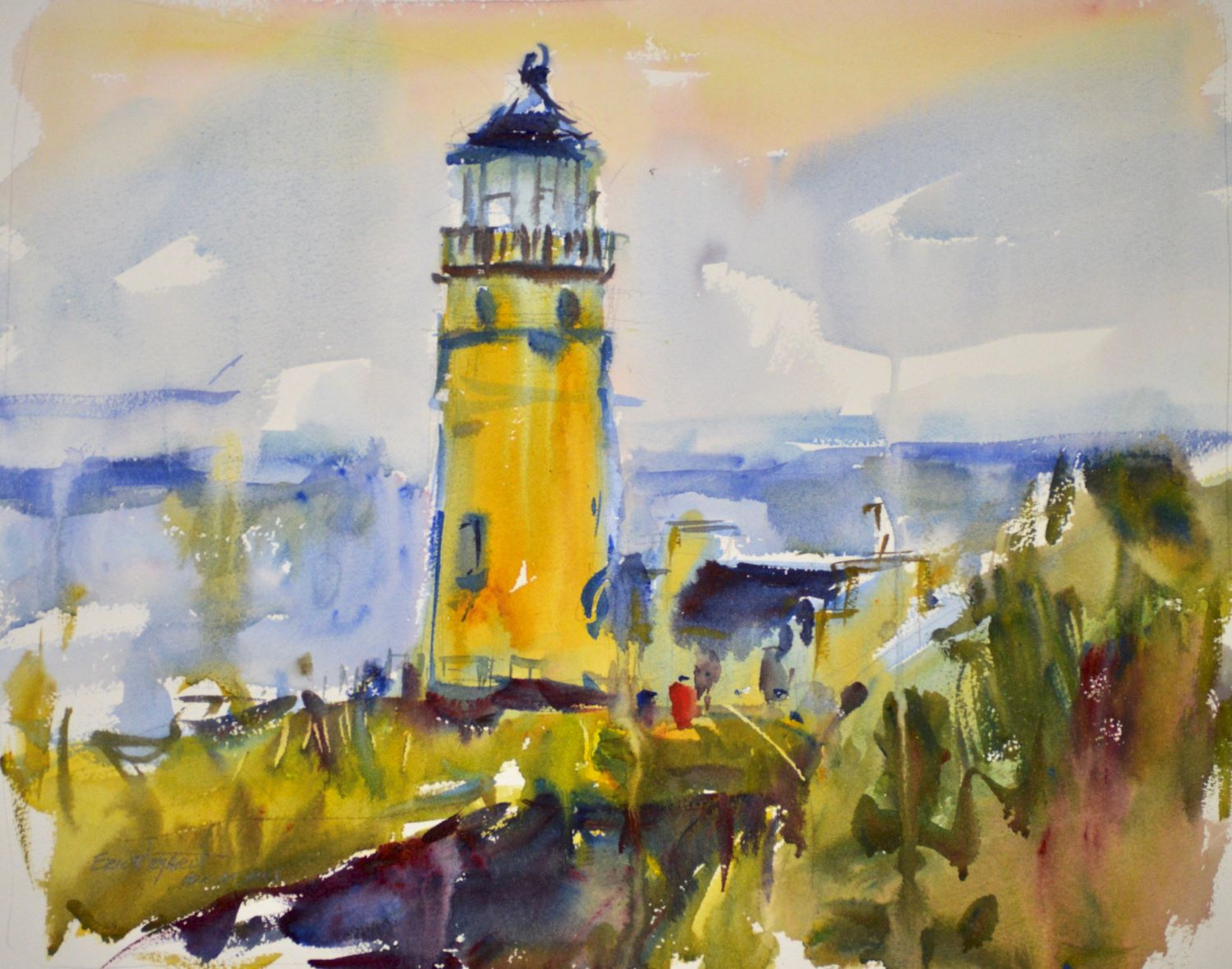 During a recent outdoor workshop, my watercolor class experienced the incredible opportunity to paint the North Head Lighthouse directly from life. With the wind at bay, we set up on the bluff, allowing for a serene and inspiring creative environment. This picturesque setting truly enhanced our painting experience.